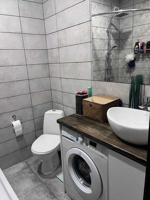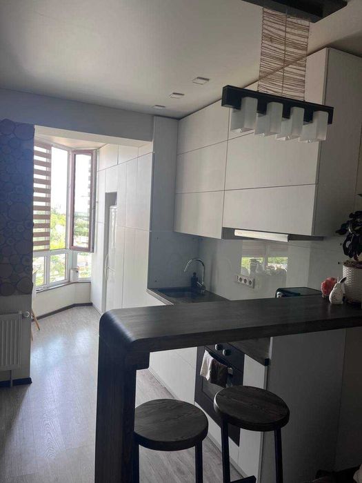 Панчішна фабрика; Продаж квартири ЖК Полісся; Новобудова ЖК Полісся. Загальна площа – 47 м2. Реалізовано дизайнерське рішення, завдяки якому, замість однокімнатної квартири - отримали повноцінну трьохкімнатну квартиру. Окрема кімната, спальня, вітальня від кухні відокремлена бар-стійкою. Кухня, 10м2, спланована згідно всіх ергономічних потреб. Санвузол спільний, гардеробна. Опалення – автономне, газовий котел. Вся інфраструктура в шаговій доступності. На перших поверхах магазини, пошта, стоматологія, поруч ринок. Спільна парковка, дитячий майданчик. Огороджена територія з відеоспостереженням. Працює охорона на території ЖК. Власне житло, проживаємо з серпня 2019 року. Робили ремонт для себе, використовували тільки якісні будівельні матеріали та сантехніку. Стеля – натяжна, в кімнатах ламінат, в ванній кімнаті - плитка та керамограніт. Стан квартири – ідеальний.