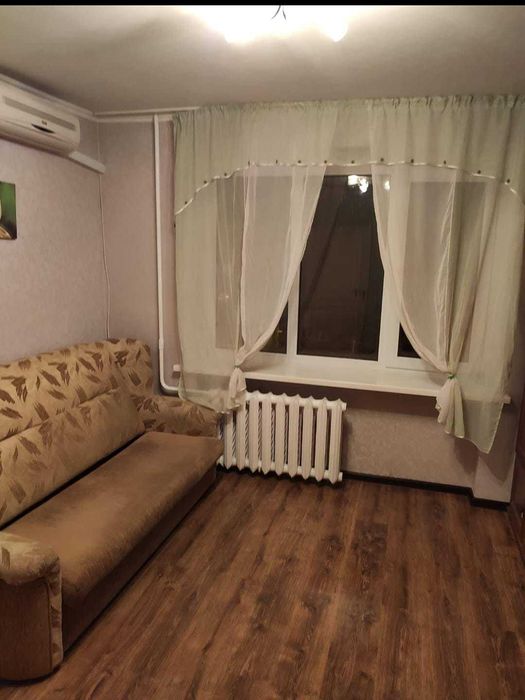 В кімнаті - диван, є кондиціонер. Все як на фото.