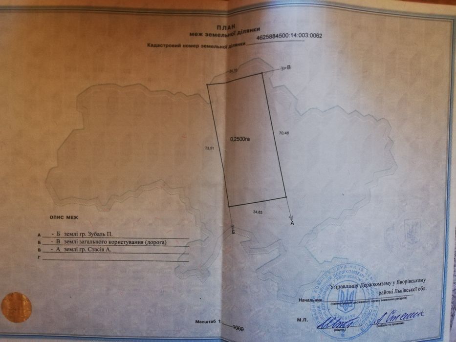 Земельна ділянка під забудову; Подається земельна ділянка під забудову в с. Цетуля, Яворівського рн. Львівської обл. (в центрі села).