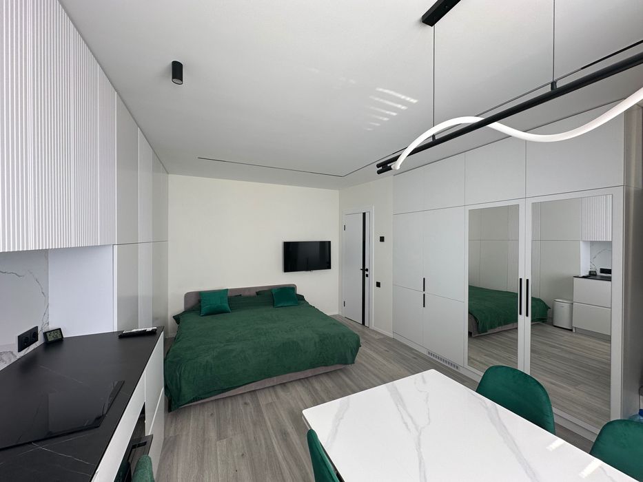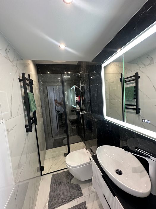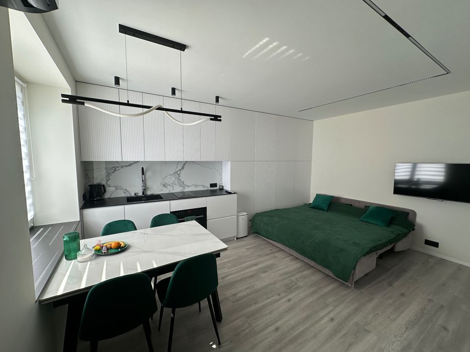 Перша здача та сучасний ремонт! Квартира оснащена новою сучасною технікою така як пральна машина , кондиціонер, духова шафа, мікрохвильова піч, холодильник з морозильною камерою, бойлер, чайник, посудомийна машина, миючий пилосос, вентиляція, телевізор, Wi-fi, цифрове телебачення. Новий посуд. Вся техніка вбудована. Багато шаф для зберігання