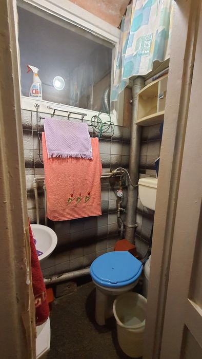 Санвузол: невеликий туалет з умивальником, окремо ванна суміщена з невеликою кухнею. Газова плита. Гаряча вода - газова колонка.