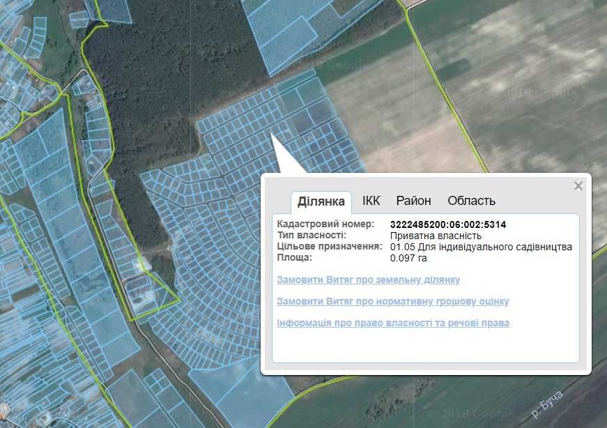 Загалом 3 участка (3222485200:06:002:5314; 3222485200:06:002:5313; 3222485200:06:002:5312) по 10 соток (0,97га), разом = 30 соток.