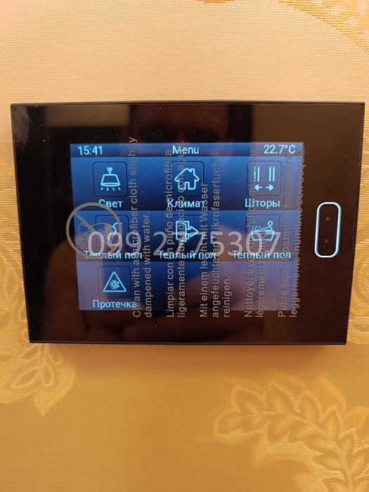Система РОЗУМНИЙ БУДИНОК (керування шторами, кондиціонерами, теплими підлогами, радіаторами опалення) . Мультірум (Мультимедійна система розподілу аудіо у приміщеннях). Встановлена система від протікання води "Neptun"