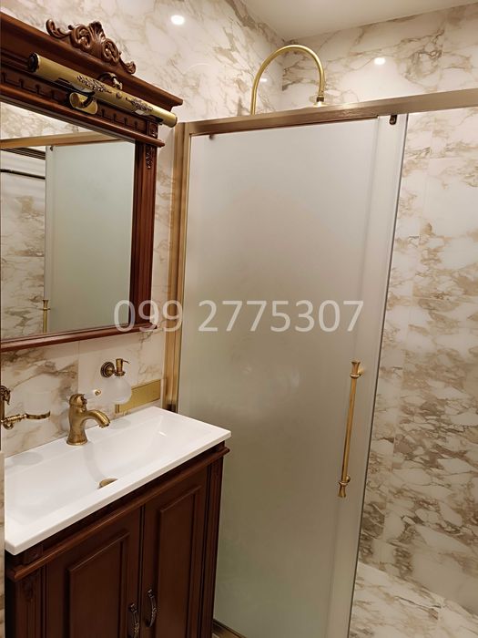 Ceiling with soundproofing, German Kermi heating radiators. Italian plumbing, Italian porcelain, Italian wallpaper and premium class lamps. German premium electrical fittings (sockets, switches) Jung.