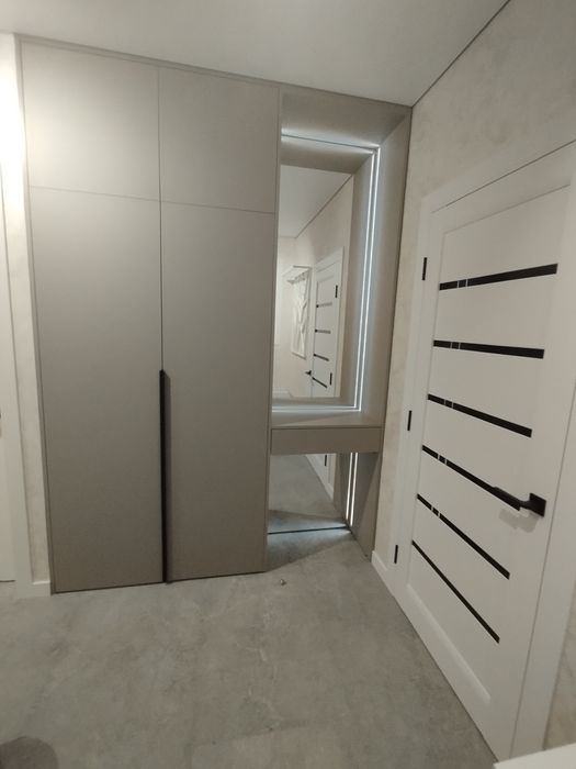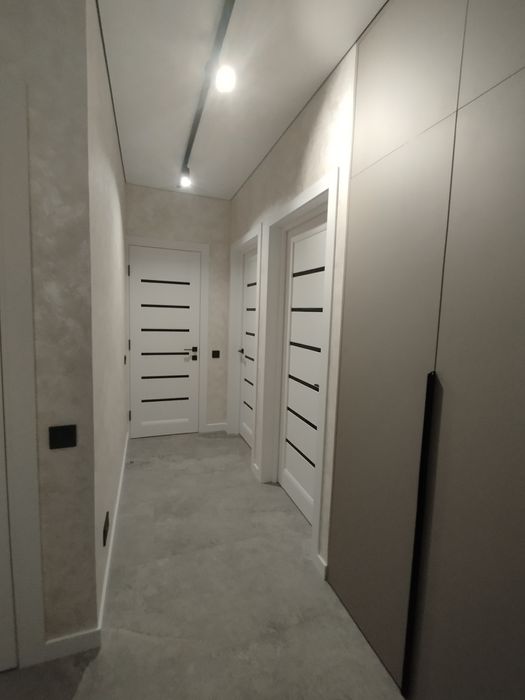 Квартира двохкімнатна -простора дві спальні ,кухня, гардеробна.Дуже якісний ремонт декор штукатурка,тіневий підвісний потолок.Є окрема засклена лоджія,яку можна використовувати,як робоче місце.З панорамних вікон відкривається чудовий вид сучасного міста.