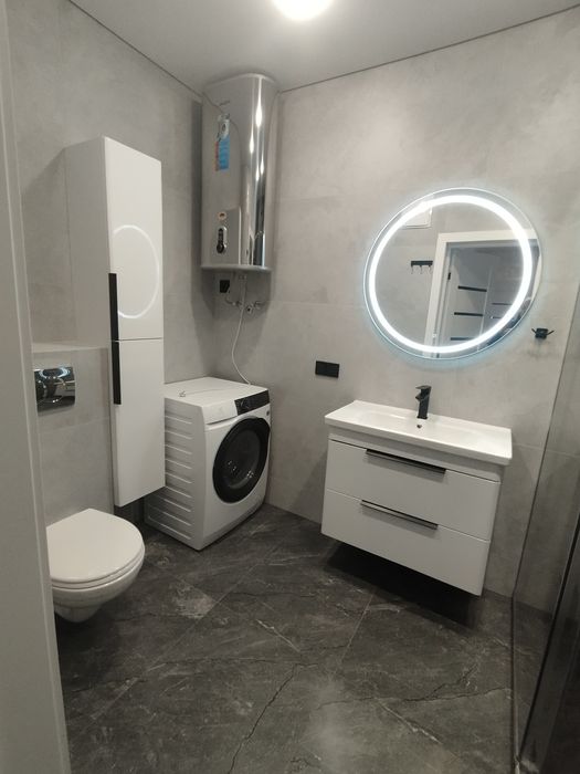 Для комфортного проживання квартира укомплектована всіма необхідними меблями та технікою:3 кондиціонери,Смарт- ТВ, кухонне обладнання, прально-сушильна машина,душова перегородка.
