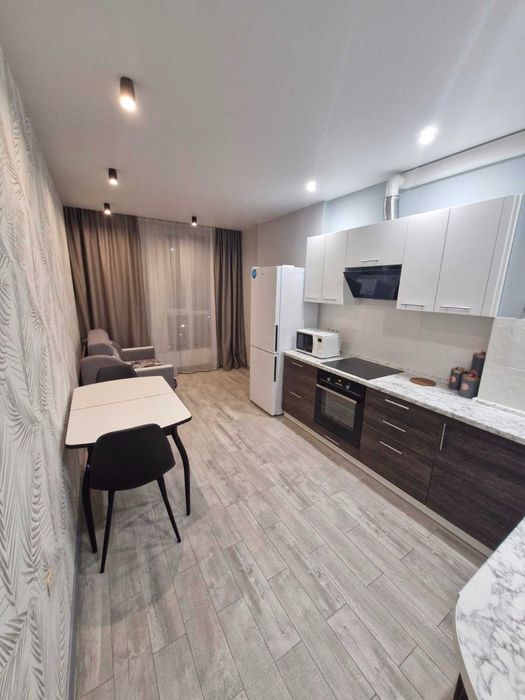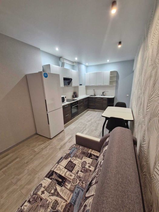 Голосіївський; Аренда 1к долгосрочно Науки 58В; Здам довгостроково 1 кімнатну квартиру Голосіїво, проспект Науки 58В, 6/25 поверхового будинку комфорт класу з зовнішнім утепленням мінеральною ватою, 43кв.м. При відключенні світла ліфт працює, вода та опалення присутні. Євроремонт, панорамні вікна в підлогу, натяжна стеля в холі, на кухні, в с/в, кімнаті. Кухня 16 кВ.м., гардіробна , холодильник no frost ,великий телевізор, пральна машина, бойлер, кондиціонер, варильна поверхня, духова шафа, НВЧ піч, витяжка, двоспальне ліжко з ортопедичним матрацом. Сан/вузол, душова-гідромасажна кабіна. Горизонтальна система опалення. До метро Деміївська, Либідська 10 хвилин на транспорті, зупинка 50м. До центру 20 хвилин на авто. В будинку магазин «ФОРА», в пішій досяжності салон краси, поштомати, аптека, магазин «АТБ», парковка, ліс та інше. Сімейна пара без тварин та маленьких дітей в пріоритеті. Ціна 18500грн.+ком.