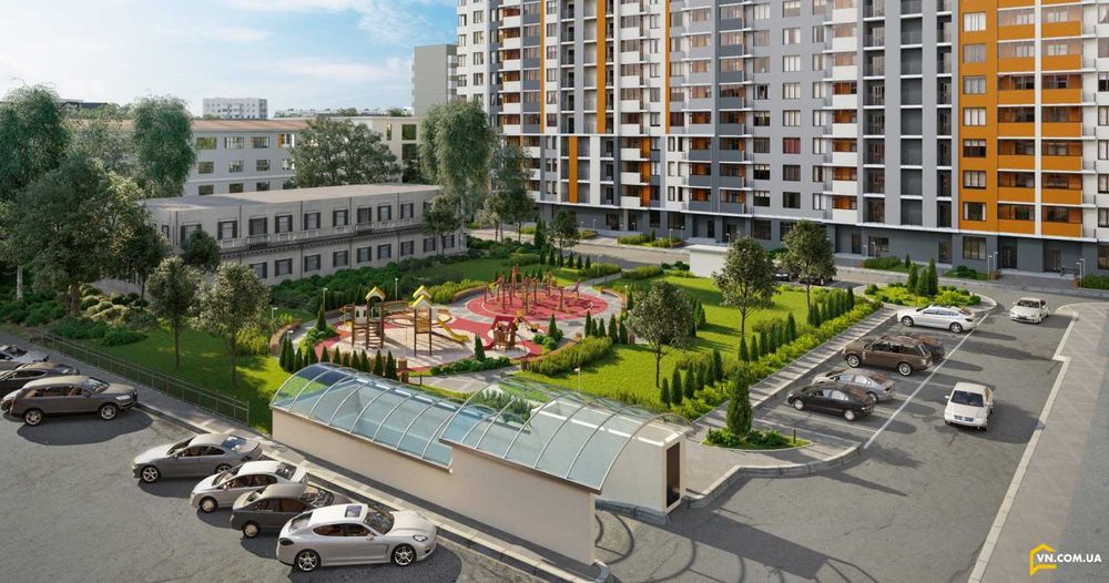 У дворі дитячий та спортивний майданчики, впорядкована прибудинкова територія