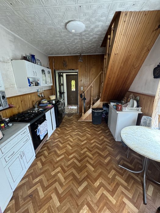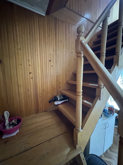 перший поверх : кухня , коридор , гостинна(або спальня )
