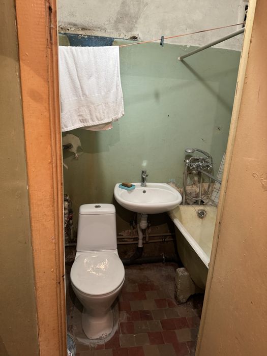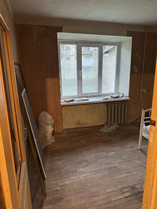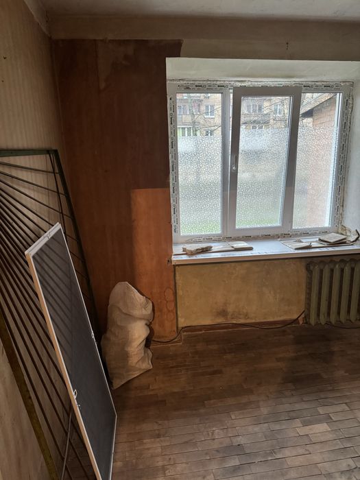 Загальна площа -21.4 кв.м., кімната - 12 кв.м., кухня - 4.9 кв.м., без балкону. Квартира потребує ремонту, є пластикові вікна, сантехніка. Всі документи в порядку.