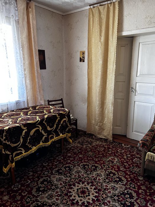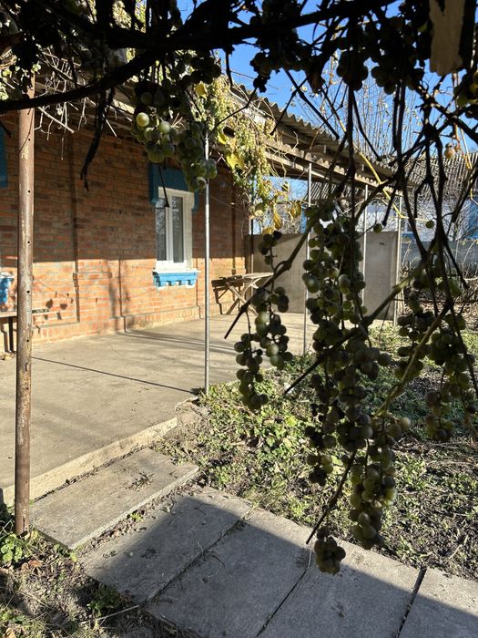 Будинок з садом та городом; Продам власний будинок в селі. 2 окремі кімнати, прихожа, коридор, кухня. Газифікований. Пластикові вікна. Все що на фото, залишається в будинку. Вода та туалет на вулиці. Особиста Криниця 2 м. Від будинку. Також, є 2 гаражі, літня кухня, комора, погріб. Город та сад біля дому