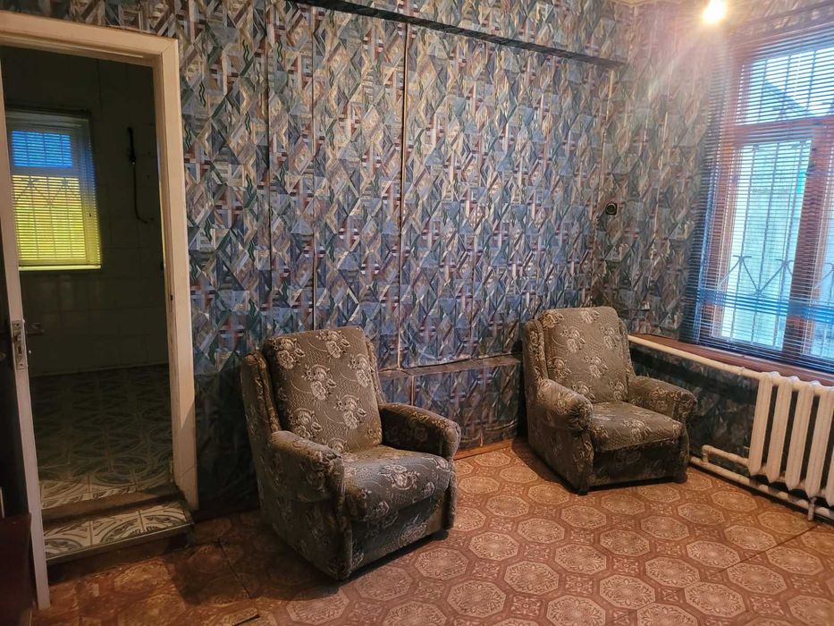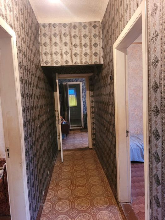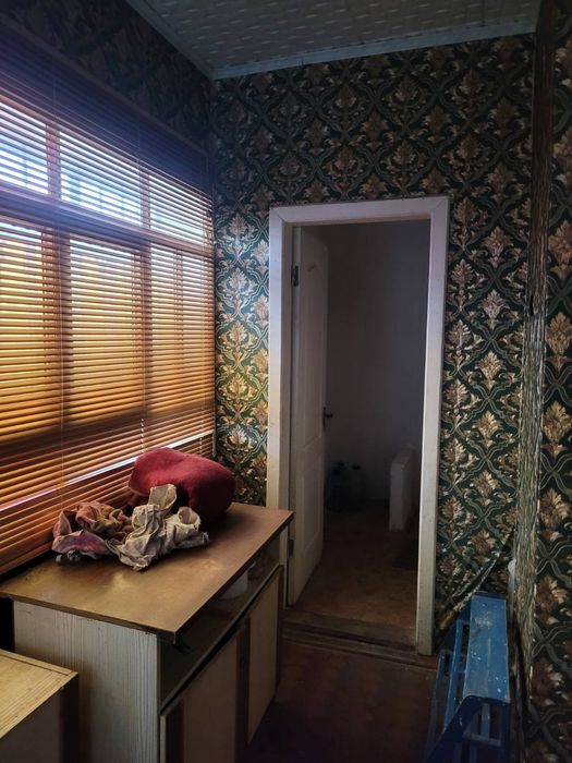 Дом:6 комнат, кухня, раздельный санузел, кладовая, длинный коридор.