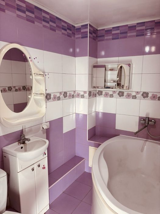 Ванна кімната з великою ванною. В під'їзді — новий ліфт.