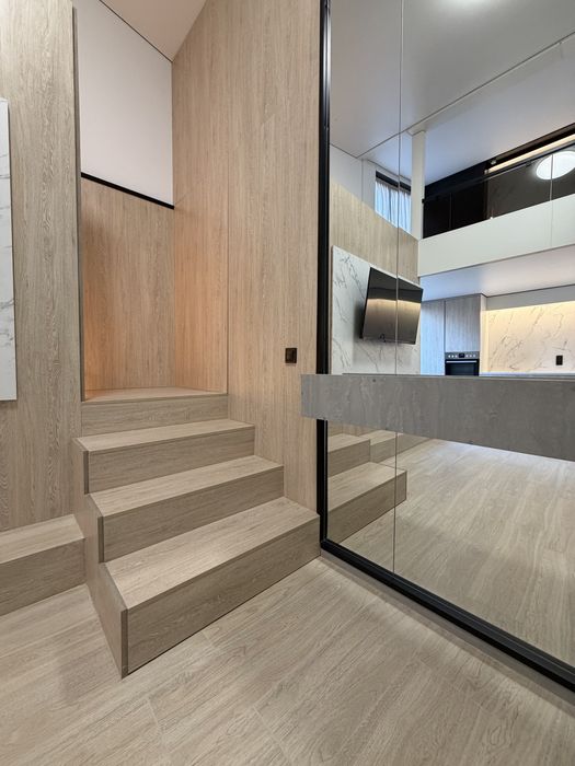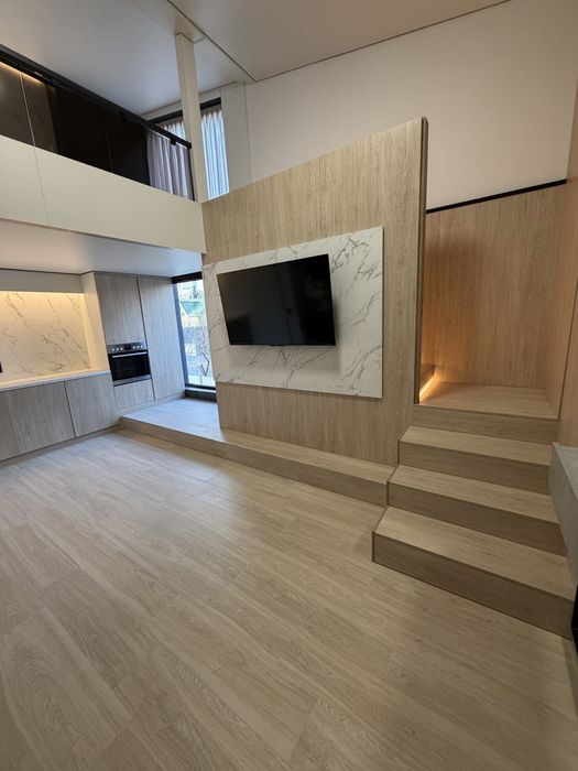 Простора з красивим ремонтом, є два санвузла на першому і другому поверсі. Житлової площі 40 квадратів + великий балкон на 5.5 квадрата.
