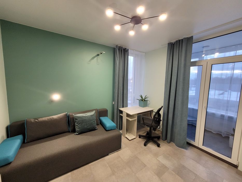 2. Диван-ліжко та облаштоване робоче місце.