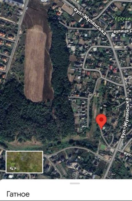 Земельна ділянка в Гатному; Земельна ділянка з двох частин загальною площею 6 соток в гарному тихому місці села, до лісу та струмка 100 метрів. До централььної вулиці 250м.