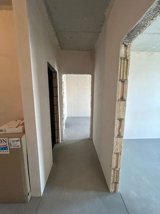 Стіни (окрім санвузлів) оштукатуренні гіпсовою сумішшю; санвузли - без оздоблення; підлога (окрім санвузлів, балконів/лоджій; покриття цементно-піщаною стяжкою; стеля в усіх приміщеннях - шліфований моноліт; зроблений монтаж систем опалення; всиновлення радіаторів, каналізації (лише стояки), водопостачання (без розведення та без встановлення сантехнічного обладнання).