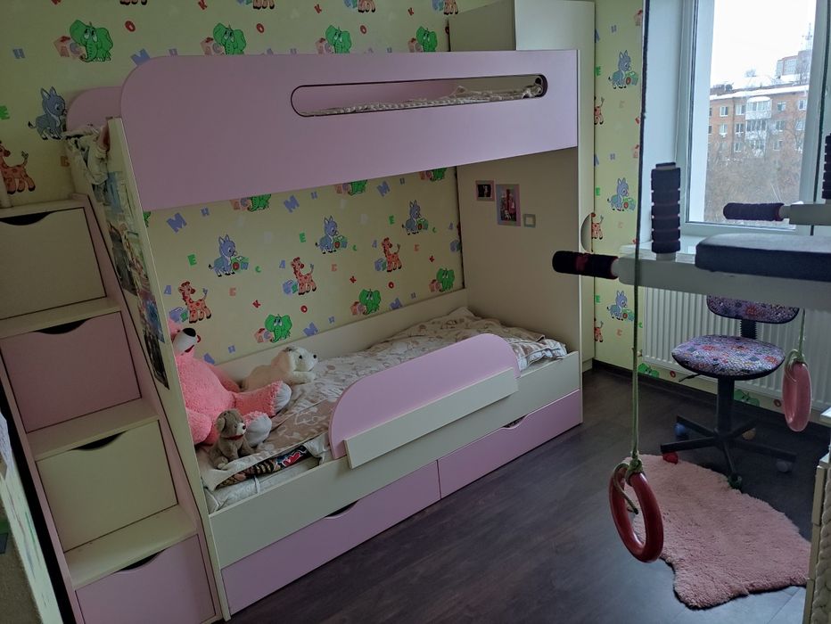 3х кімнатна: спальня, дитяча, вітальна, кухня.