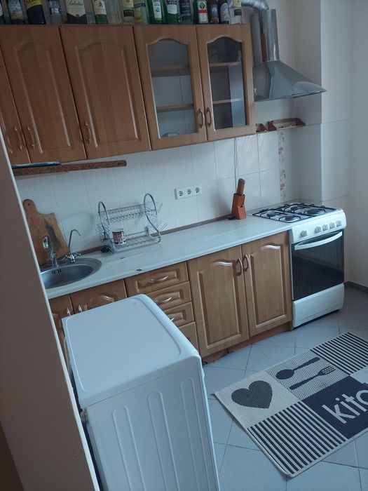 В квартире установлена газовая плита,вытяжка,стиральная машина,холодильник,телевизор.