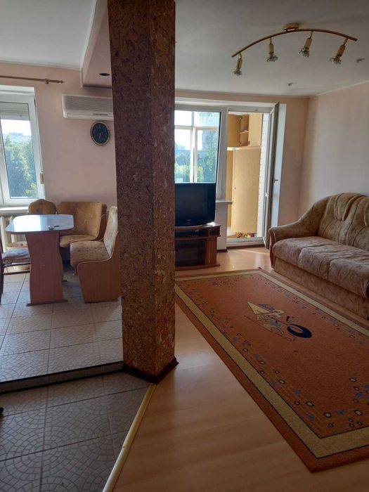 3-кімнатна квартира по пр. Молоді. Без комісії; Цегляний будинок, дві окремі спальні, кухня-студія, балкон, лоджія. В коридорі простора шафа, на кухні є меблі та техніка, в залі м'які меблі, телевізор. В спальні велике двоспальне ліжко, шафа, комод, тумбочки, телевізор. В дитячій спальні розкладний диван, робочий стіл і шафа. Все що на фото залишається.