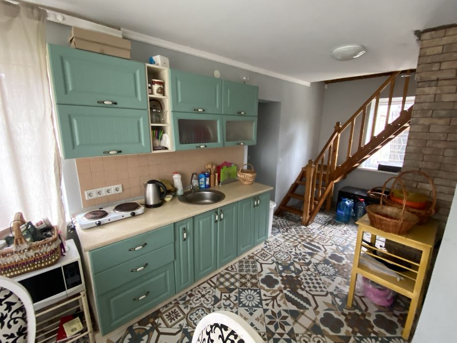 Будинок двоповерховий (70 м2) з туалетом, душем, кухнею, пластиковими вікнами, нові двері, нова проводка(повна реконструкція 2017-2018 року). Сигналізація, інтернет, телебачення. Піч для опалення та приготування. Бойлер, холодильник, меблі, телевізор, варочна поверхня, пилосос, посуд, каструлі та все інше.