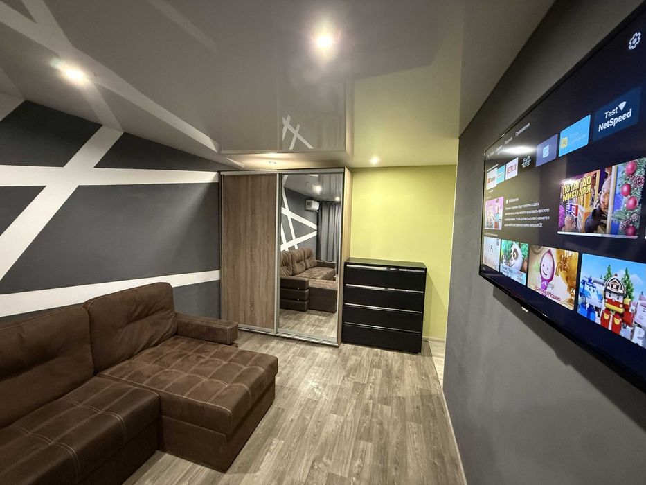 Кондиціонер, швидкий інтернет, роутер, телевізор з SmartTV приставкою. Розкладний диван, та велика шафа купе, мікрохвильовка, чайник, і вся потрібна побутова техніка!