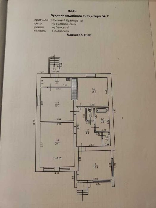 Будинок знаходиться за адресою: Полтавська область, Лубенський район (колишній Пирятинський). Рік побудови — 1993. Загальна площа будинку 85,1 м², житлова — 33,6 м². Побудований із залізобетонних блоків, облицьований силікатною цеглою. Під’їзд до будинку та дороги по селу асфальтовані.