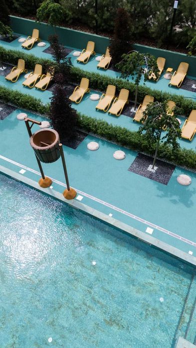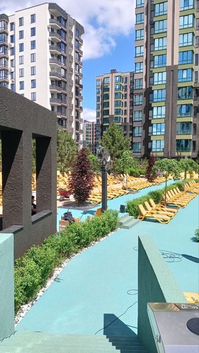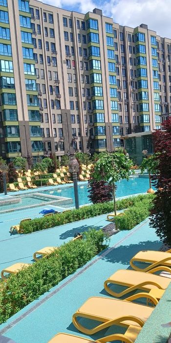 • На відстані 100м від під'їзду знаходиться розкішний басейн з усіма зручностями для відпочинку літом;