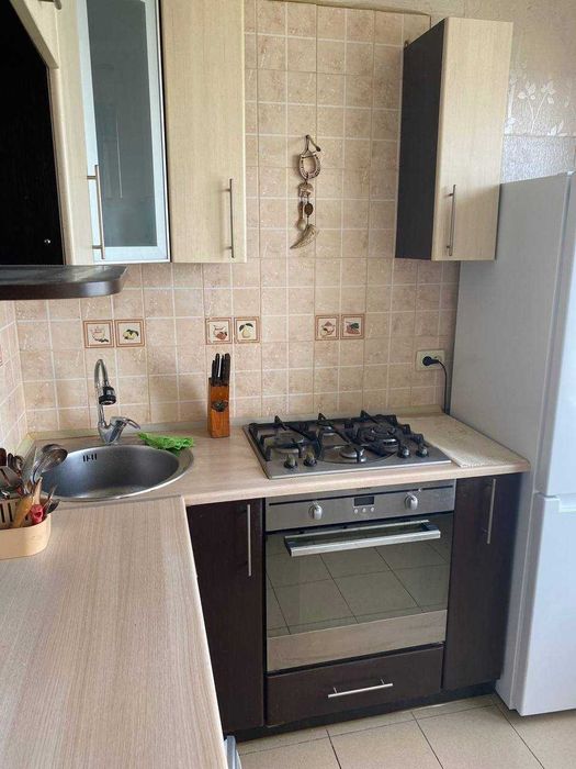 Квартира укомплектована всім необхідним для комфортного проживання: 2 балкони, вбудована кухня, варильна панель газ, духова шафа, холодильник, пральна машина, мікрохвильова піч, пилосос