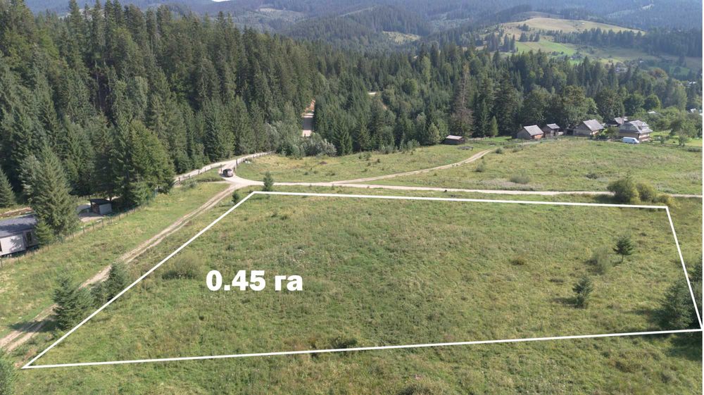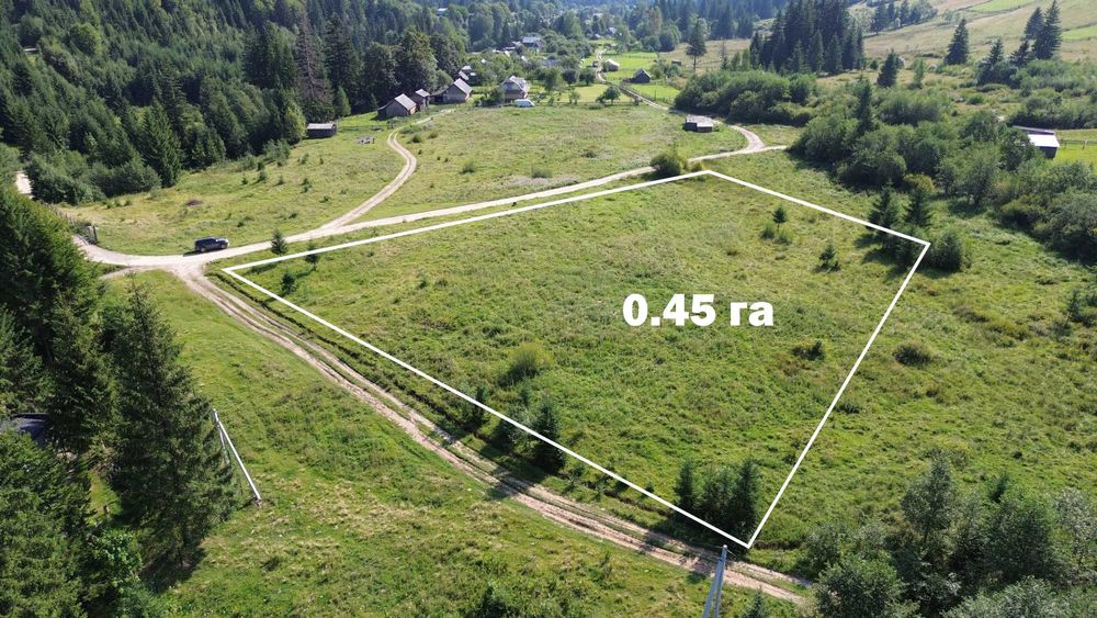 Ділянка біля Буковелю; Пропоную до продажу рівну земельну ділянку площею 45 соток у мальовничому селі Кривопілля (Верховинський район, Івано-Франківська область). Ідеально підходить для будівництва котеджу, відпочинкового готелю або глемпінгу.