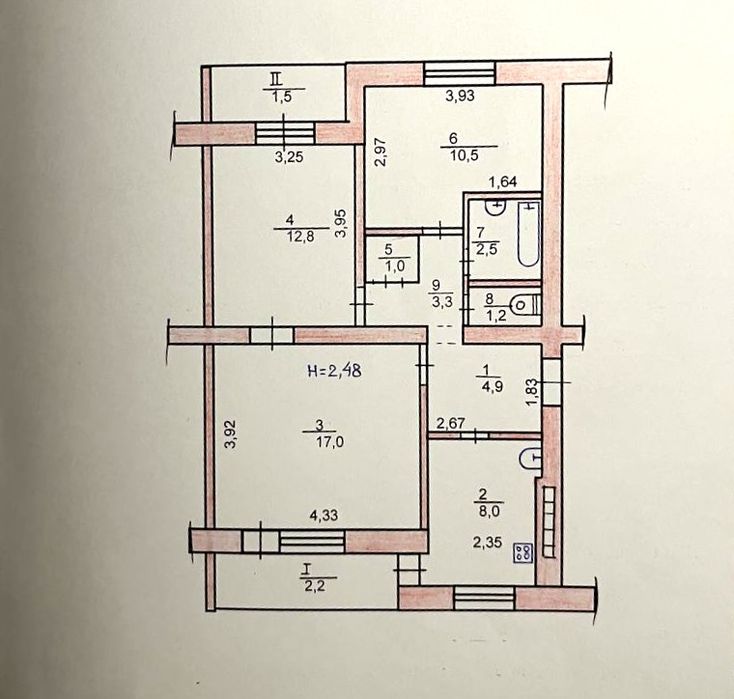 • Висота стель — 2,48 м