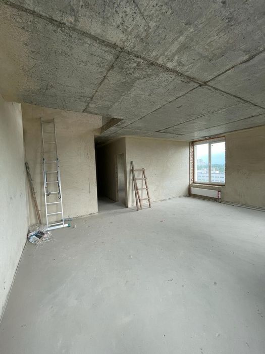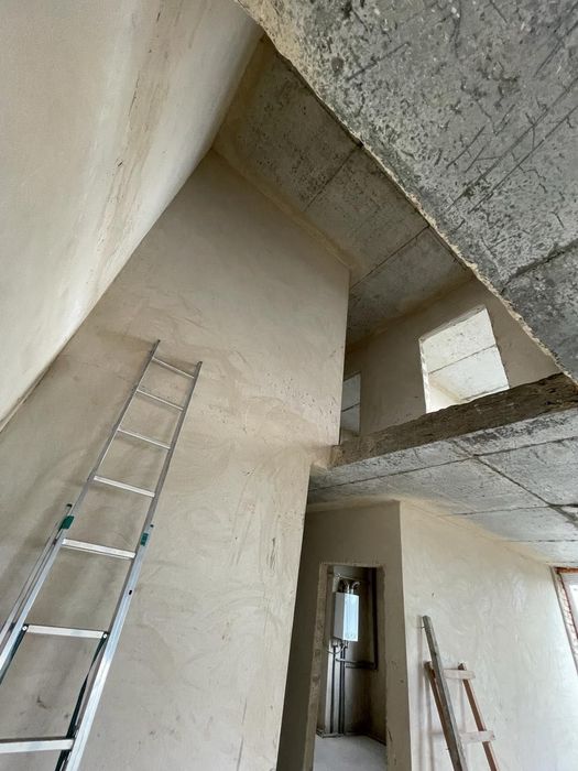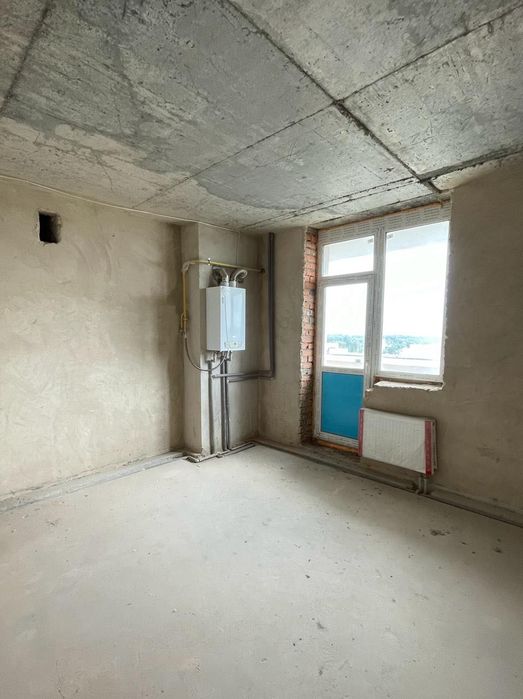 Стіни поштукатурені, зроблена стяжка, розведено опалення і встановлені батареї.