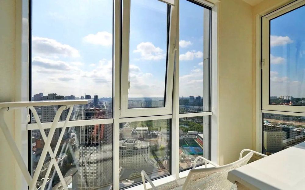 Панорамное остекление открывает вид на центр Киева, а в ночное время огни города никого не оставят равнодушным. Все окна квартиры выходят в тихую зону, напротив нет домов и шума от дорог.