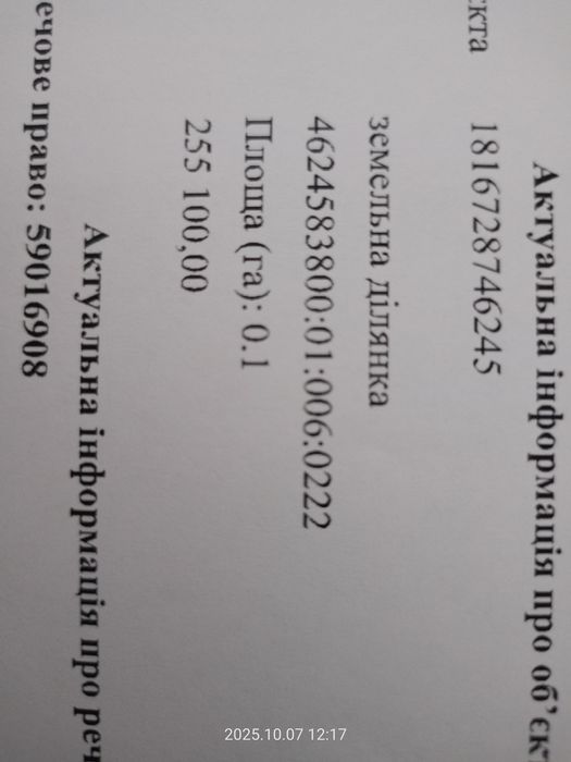 | Земельна ділянка: |