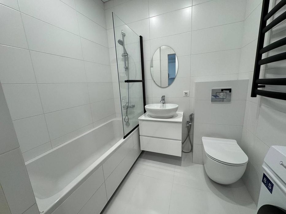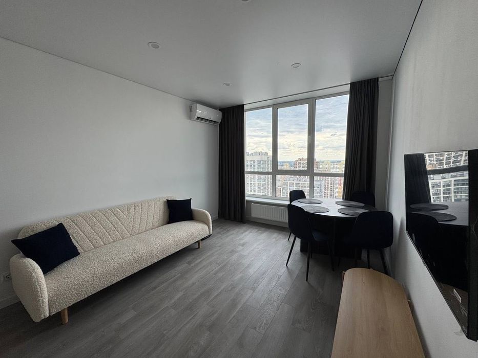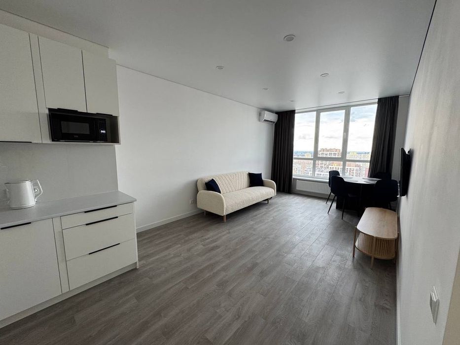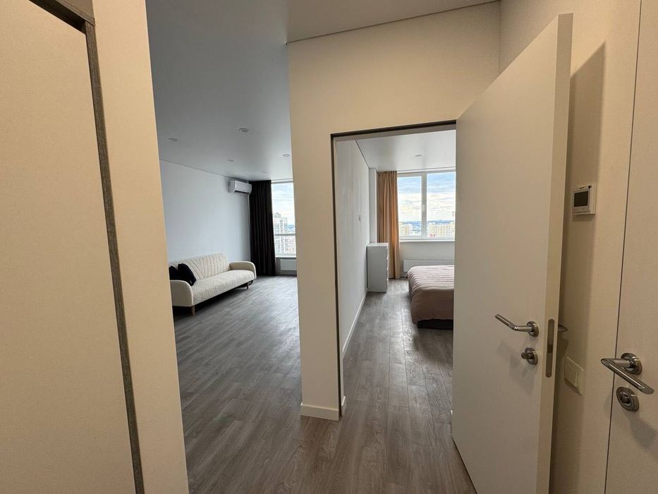 Здам свою світлу простору квартиру 1+1 (окрема спальня). Тільки після ремонту, ліжко 180*200, посудомийка, ванна, бойлер, пральна машина з сушкою, тепла підлога, кондиціонери в кожній кімнаті. Можна з тваринами. В будинку є генератор і працює ліфт під час відключень світла. Закрита територія двору, охорона, домофон, вся інфраструктура поряд з будинком.