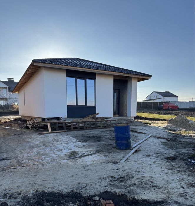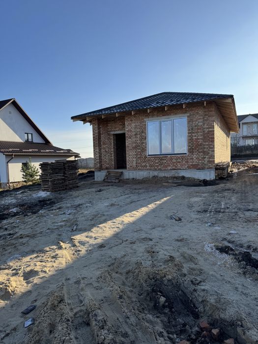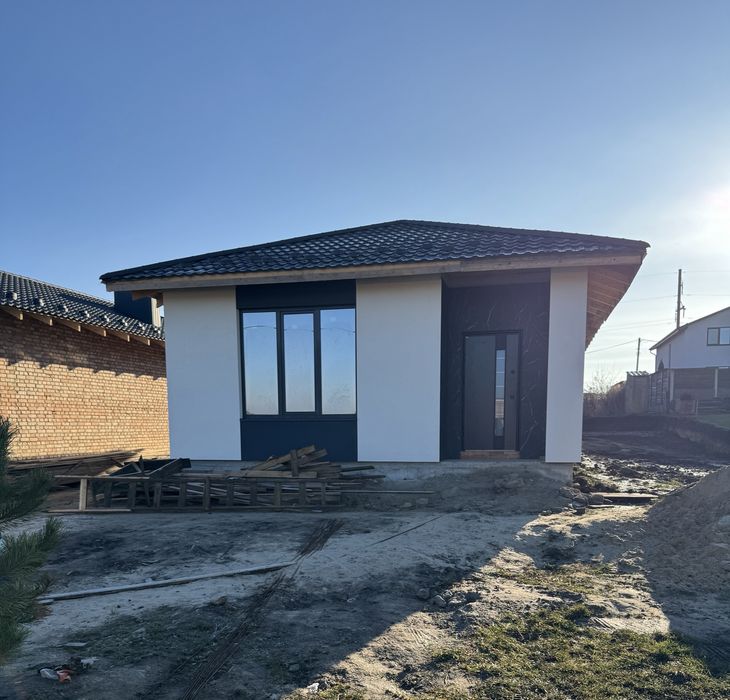 Продам будинок американку масив Київський; Продам одноповерховий будинок площею 84 м2 на 5 сотках на масиві Київський. Якісне будівництво в 1,5 цегли, утеплений, енергозберігаючі вікна Aluplast з соларом, протизламні двері Bastion. Підключено світло, сертик, свердловина. Вулиця активно забудовується, поруч мешкають сусіди, зроблено асфальтований доїзд до будинків.
