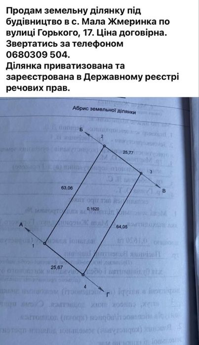 Земельна ділянка під будівництво; Продам земельну ділянку у с. Мала Жмеринка