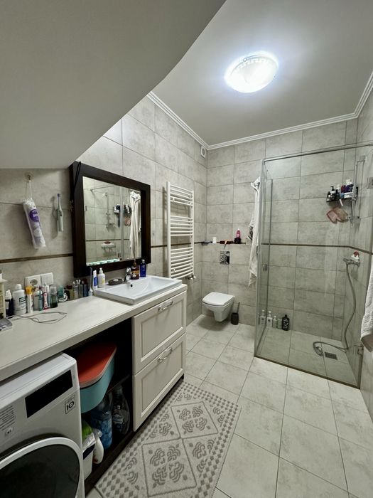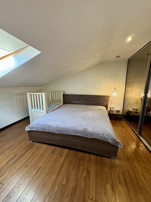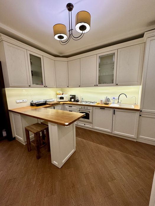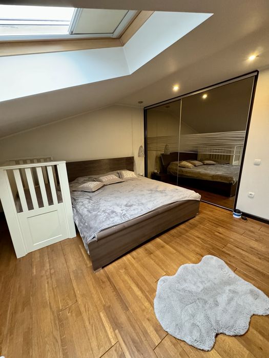 вул. Берегівська. Продається разом з меблями та вбудованою технікою. Усі меблі та підлога з масиву. Тепла підлога. Є своя скважина. 2 ванні кімнати. Загальний коридор з сусідом,з великою шафою.