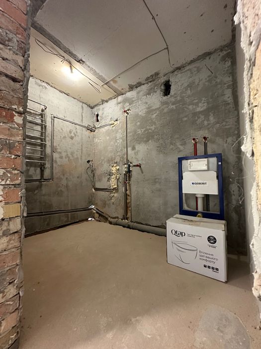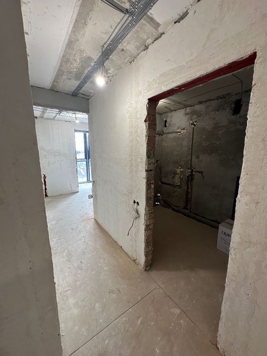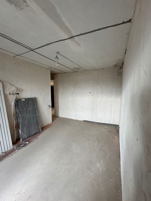 залита чистова стяжка, стіни вирівняні, замінена електрика, сантехніка й каналізація.