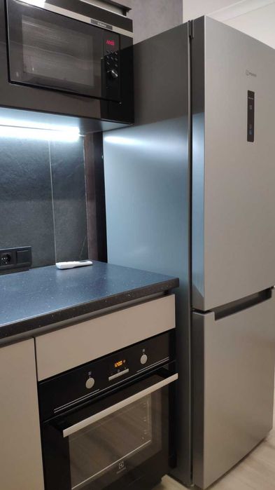 Уся побутова техніка: холодильник, телевізор, мікрохвильова піч, пральна машина, посудомийна машина, електрична духовка, електроплита.
