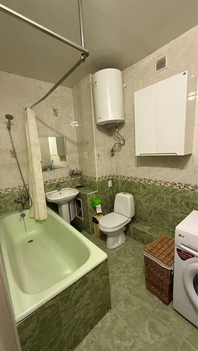 Укомплектована меблями та побутовою технікою (холодильник, пральна машина автомат, бойлер, два телевізори, мікрохвильова, електро чайник, електрична плита, кондиціонер).