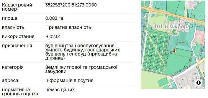 | Земельна ділянка: |