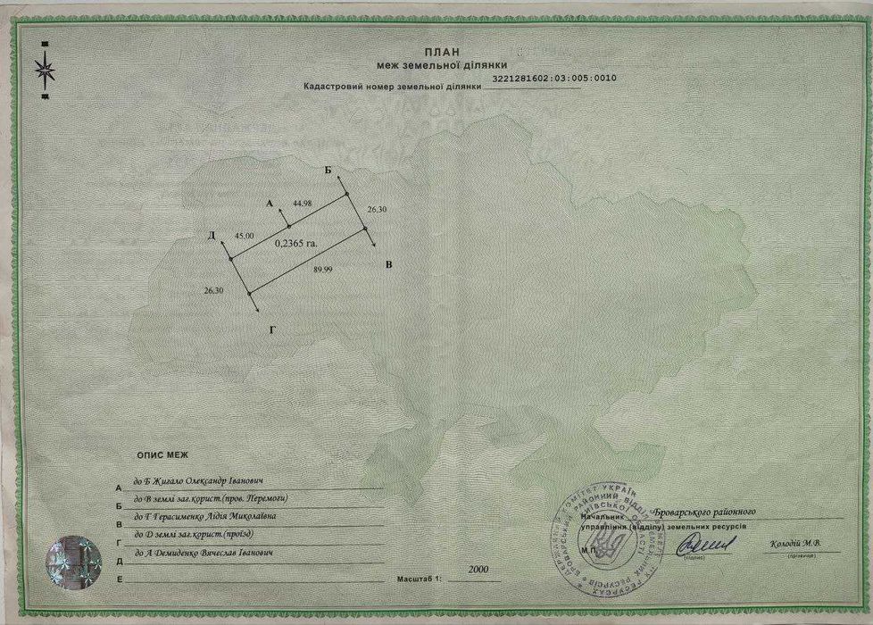 Кадастровий номер — 3221281602:03:005:0010