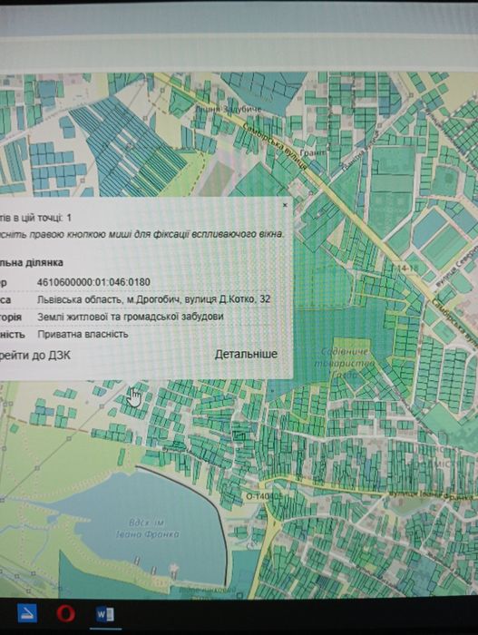 Продається земельна ділянка площею 0.06га в м.Дрогобич; Продається приватна земельна ділянка в м.Дрогобич на вул.Д.Котка 32 (біля Тандему) площею 0.06га (вільна від забудови). Поряд із ділянкою проходять: лінія електропередач,водогін, каналізація,газ.Також поруч є озеро (Залісся).Район дуже перспективний і стрімко забудовується.