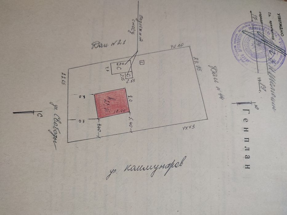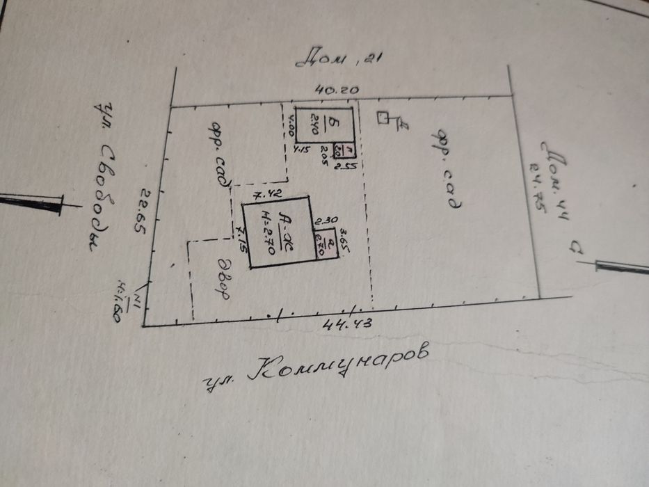 Зручне розташування — кутова ділянка, фасад виходить на дві вулиці: Калмуханова та Свободи. Є можливість окремого в’їзду.