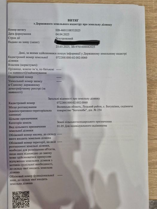 | Земельна ділянка: |