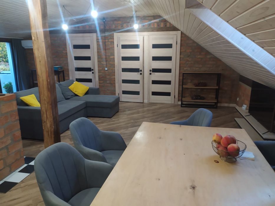 • Основний простір (2-й поверх): Простора вітальня, об’єднана з кухнею та столовою зоною, 3 окремі спальні, вихід на власну терасу. Облаштовано 2 повноцінних санвузли (ванна+туалет та душ+туалет).