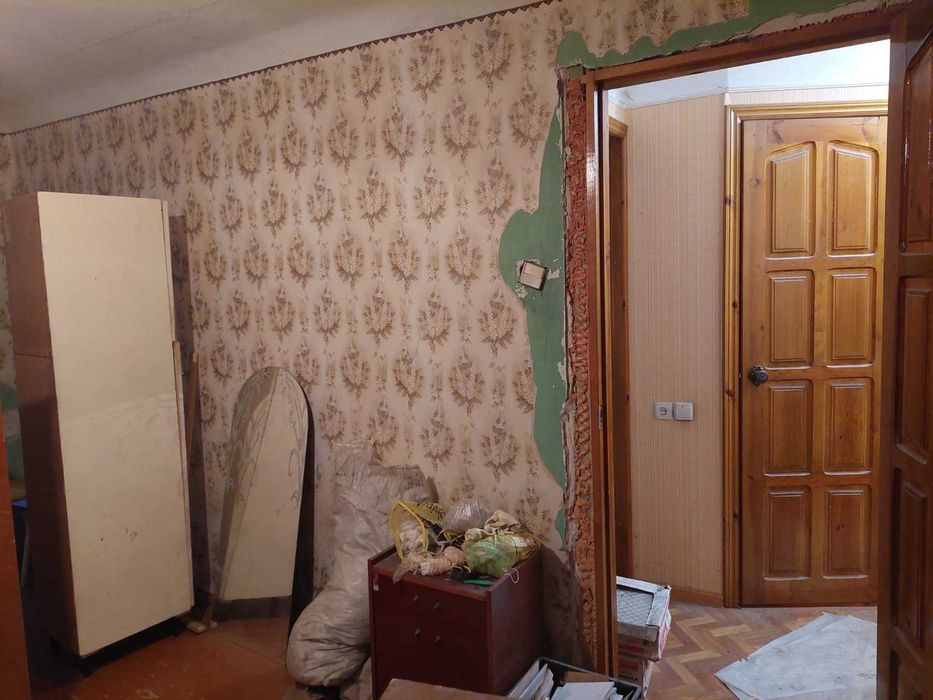 В ванне и на кухне положена плитка. В комнате обои нужно менять.