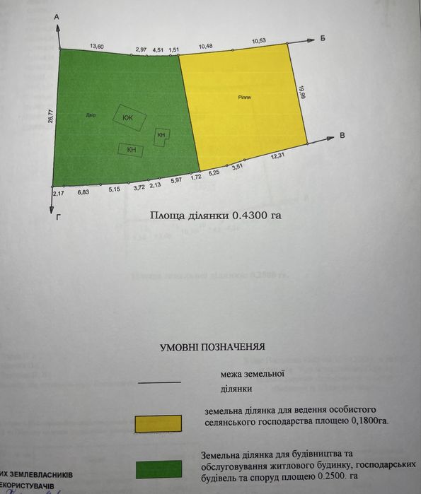 Загальна площа ділянки 45 соток, з них 25 соток під будівництво інша половина під СГ.