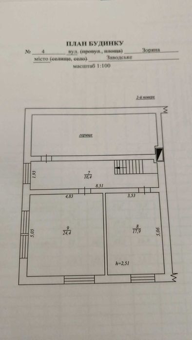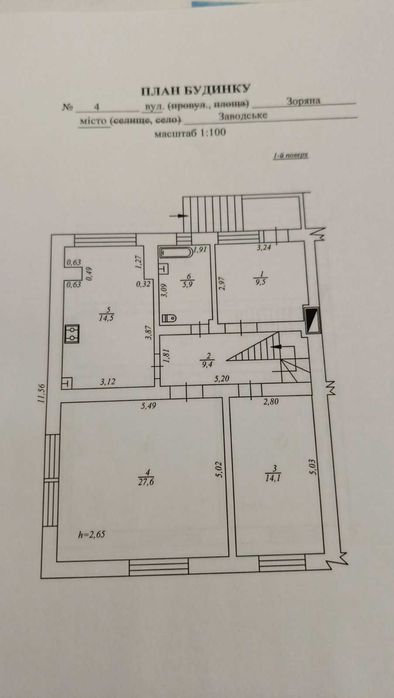1-й поверх: зал, санвузол, кімната, кухня, коридор.